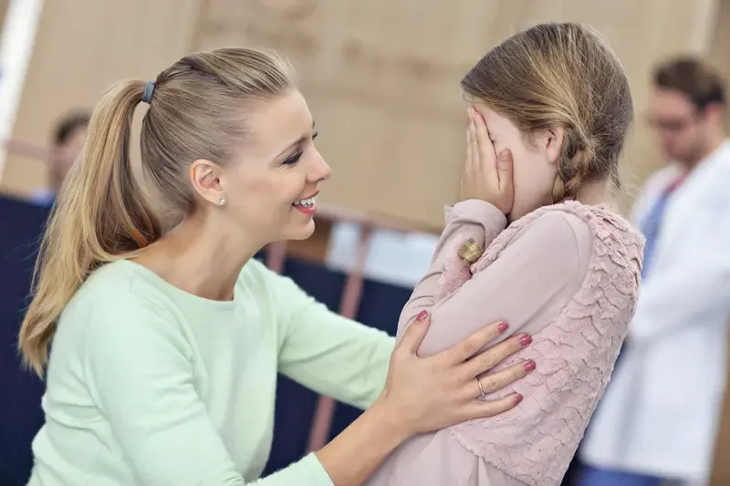 Offer gentle physical reassurance—like a hand on their back or a firm hug—if welcomed.